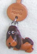 バセットハウンドの特徴でもある、胴長・短足・垂れ下がった大きな耳が、愛嬌あるお顔に仕上がった本皮素材の犬モチーフストラップです。