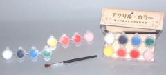 水で溶けて、乾くと耐水性になる<8色アクリルカラー・筆>もセットでお届けしますので、このセットですぐ始められますよ。 (^^ゞ