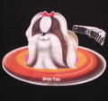 フリスビーに乗ったわんちゃんが、とってもかわいいキャラクター絵に仕上がってます。