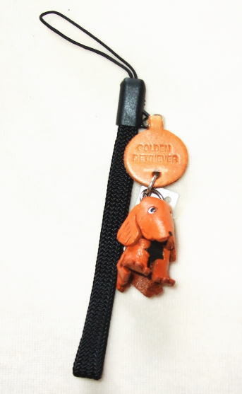 ゴールデンレトリーバー好きな人の携帯に着けてほしい、本革ストラップです