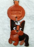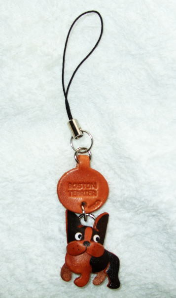 ボストンテリアの、ちょっとお茶目な感じが出ているかわいい、本皮素材の犬モチーフストラップです。