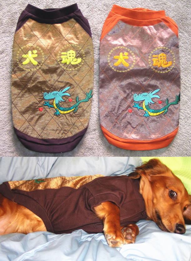 背中に「犬魂」の文字とデフォルメされたかわいいドラゴンが入ったジップアップ付きスウェットカットソーです!